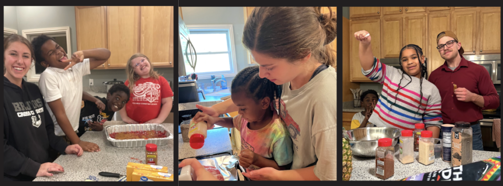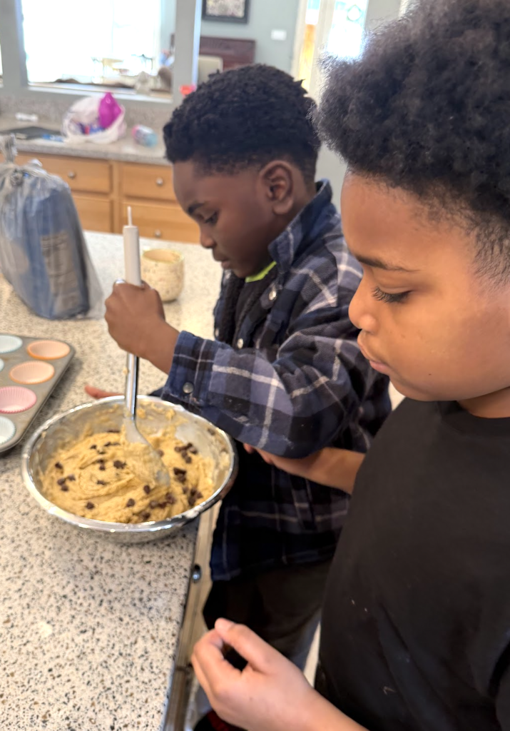 Cooking nights are active. Someone is measuring flour. Someone else is seasoning chicken. Another is carefully stirring a bowl of dip, making sure it tastes “just right.” There’s learning happening in real time – how to follow a recipe step-by-step, how to manage heat on the stove, and how to clean up afterward.