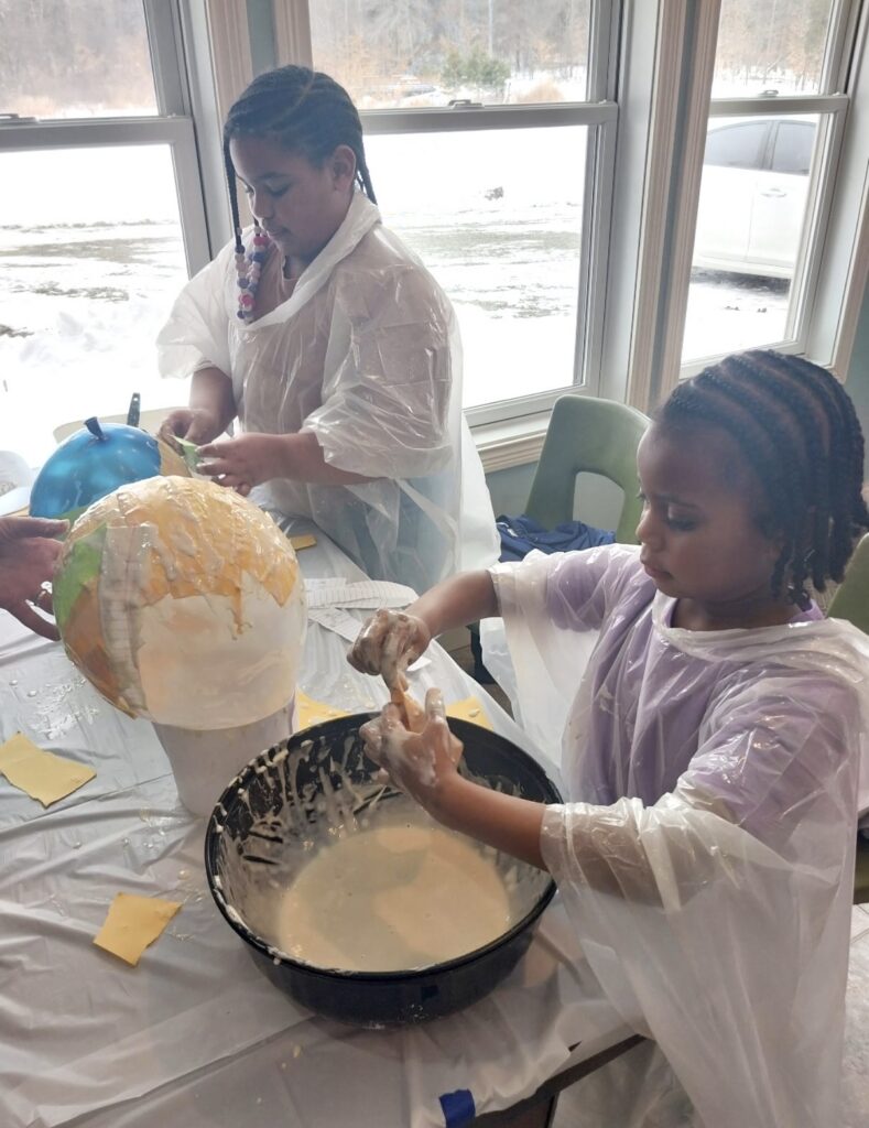 Things kicked off with one of the best parts: making the paper mache “goop.” The kids loved getting to mix it themselves, turning simple ingredients into something they could actually use. 12-year-old Amiri shared, “I loved making the goop and adding the cut-up paper to create the mask, it was my favorite part!” Once the balloons came out and the paper strips were ready, it was game on. Dipping, layering, and sticking quickly turned into a full-on, hands-on adventure. Some of the kids had done paper mache before, but for others, it was brand new—and that just made it even more exciting.